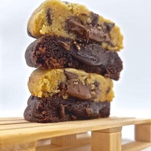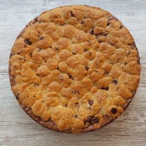 Clásico de la repostería americana. Utilizamos chocolate del 70% y lo cubrimos con una capa de cookies con chips de chocolate. Se hornea el tiempo justo para que quede jugoso por dentro y la capa de cookie crujiente.